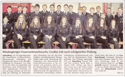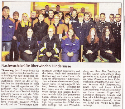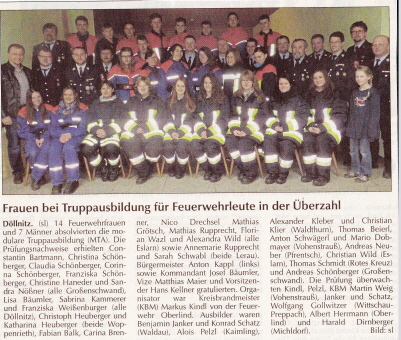 Aus unserer Wehr nahmen Constantin Bartmann, Christina, Claudia, Corinna und Franziska Schönberger, Christine Haneder und Sandra Nößner teil.