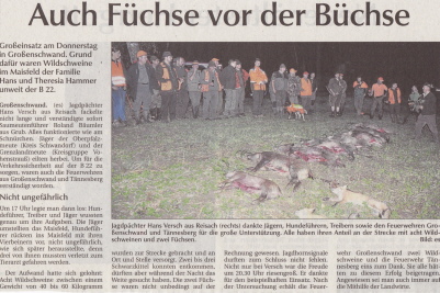 Treibjagt war erfolgreich – Feuerwehr sicherte die B22 ab