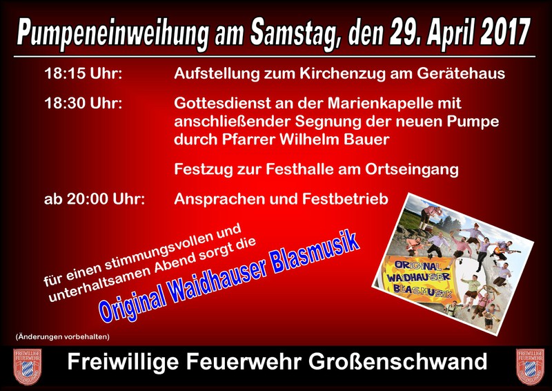 Pumpeneinweihung am Samstag, den 29. April 2017